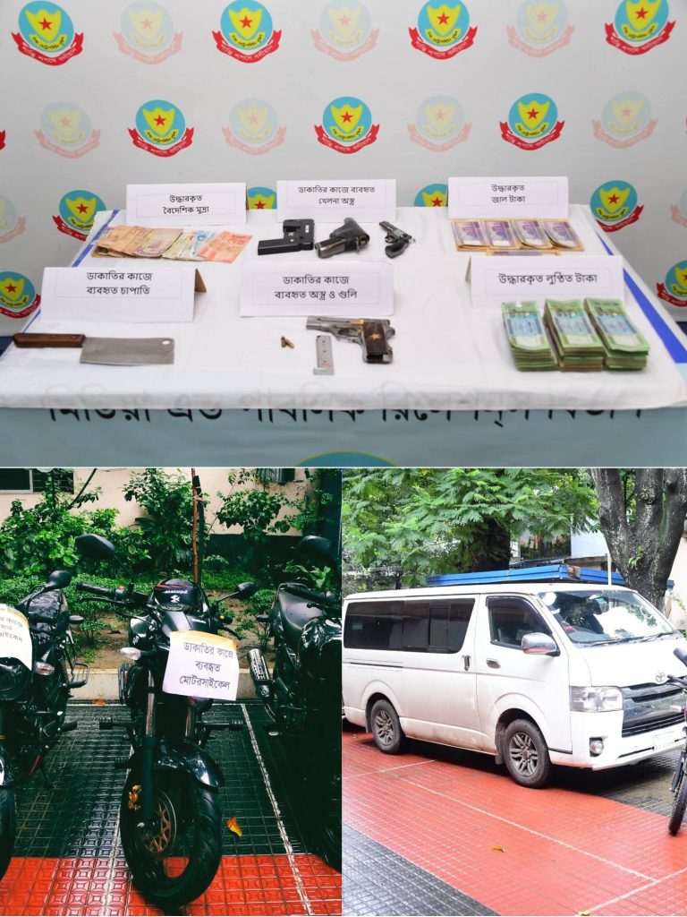 উল্লেখ্য, অত্র মামলায় গ্রেফতারকৃত আসামিগণ গত ২৪ জানুয়ারি ২০২৫ খ্রি. কামরাঙ্গীরচর থানা এলাকায় আগ্নেয়াস্ত্রের দ্বারা গুলি করে ৫০ ভরি স্বর্ণ লুট এবং গত ২০ অক্টোবর ২০২৪ খ্রি. তারিখ সাত মসজিদ রোড ধানমন্ডি থানা এলাকায় একই পদ্ধতিতে আগ্নেয়াস্ত্রের দ্বারা গুলি করে ভিকটিমের নিকট থেকে ৫২ লক্ষ টাকা ছিনিয়ে নিয়ে যাওয়ার ঘটনায় তাদের সম্পৃক্ততা রয়েছে মর্মে প্রাথমিক জিজ্ঞাসাবাদে স্বীকার করেছে।