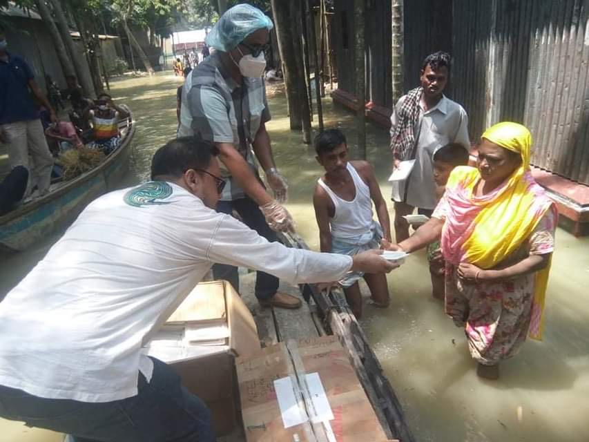 খাবার হাতে বন্যা দূর্গতদের অনেকে আবেগপ্রবণ হয়ে পড়েন । করোনাভাইরাসের সংক্রমণের পরে দীর্ঘমেয়াদী এবারের বন্যার কারণে অনেকে ঈদের দিন খাবার খেতে পারেননি ।