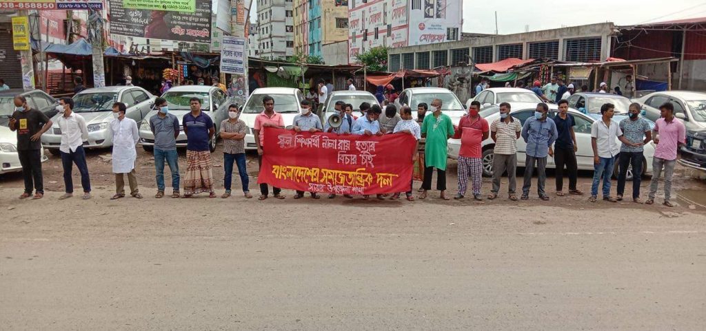 রাজধানীর সন্নিকটে সাভারে স্কুল শিক্ষার্থী নীলা রায় হত্যাকাণ্ডের প্রতিবাদে ও খুনি মিজানের বিচারের দাবিতে বিক্ষোভ ও মানববন্ধন করেছে বাংলাদেশের সমাজতান্ত্রিক দল বাসদ সাভার উপজেলা শাখা। ২৫ সেপ্টেম্বর সকাল ১০:৩০ টায় সাভার রানা প্লাজা স্মৃতি স্তম্ভের সামনে উপজেলা শাখার আহ্বায়ক কমরেড সৌমিত্র কুমার দাসের সভাপতিত্বে ও সদস্য সচিব আহমেদ জীবন এর সঞ্চালনায় বক্তব্য রাখেন বাসদ ঢাকা নগর শাখার সদস্য কমরেড খালেকুজ্জামান লিপন,