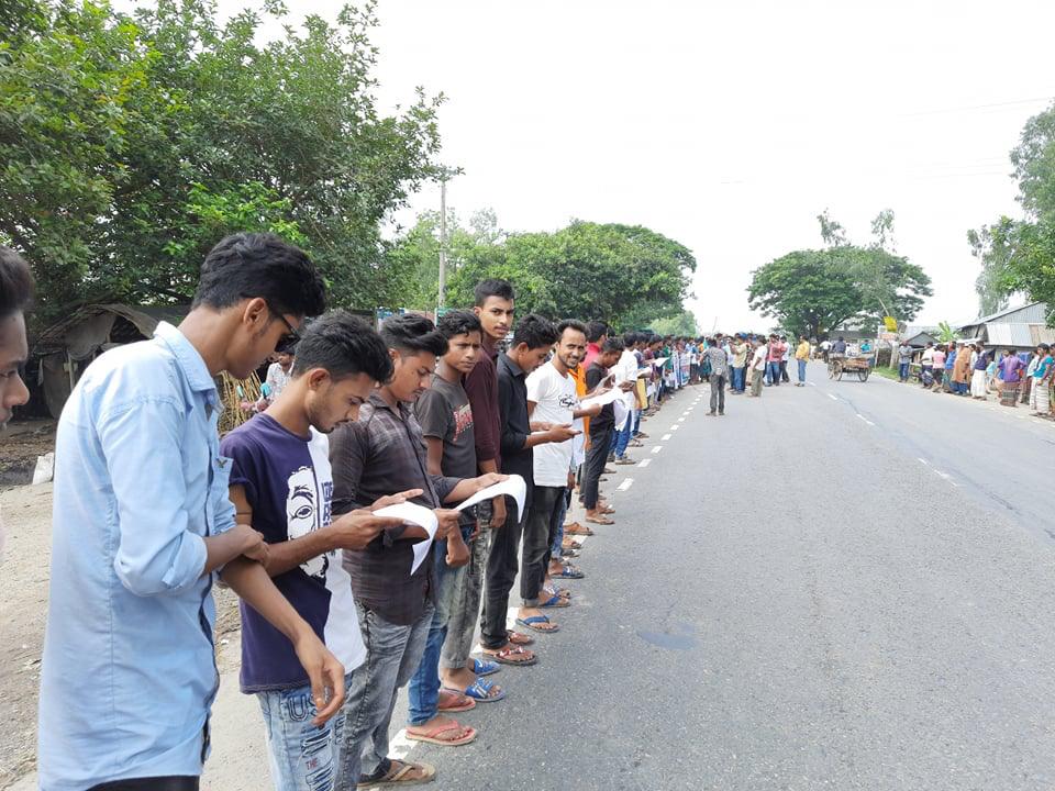 সিরাজগঞ্জ তাড়াশে মহিষলুটি বাজারে হাইওয়ে রোড রোজ রবিবার ( 27 সেপ্টেম্বর) সকাল ১১ টায় দুর্নীতিবাজ মাদক চোরাকারবারি চেক জালিয়াতি সুদখোর হেলালের বিরুদ্ধে অত্র এলাকার জন সাধারন ও ভুক্তোভুগীগন মানববন্ধন করেন।