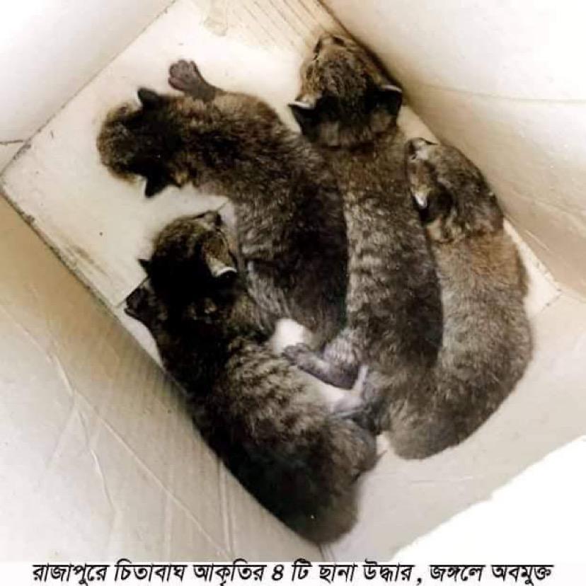 বিষয়টি উপজেলা বন বিভাগকে অবহিত করলে তারা এসে ছানাগুলো উদ্ধার করে জঙ্গলে অবমুক্ত করেন। উপজেলা বন কর্মকর্তা মোঃ আলমগীর হোসেন জানান, উর্ধ্বতন কর্মকর্তাদের অবহিত করে শের-ই বাংলার জন্মভুমি সাতুরিয়া মিয়া বাড়ীর গহীন জংগলে ছানাগুলো অবমুক্ত করা হয়। বাচ্চুগুলো দেখে বন বিড়ালের বাচ্চা হবে বলে মনে হচ্ছে।