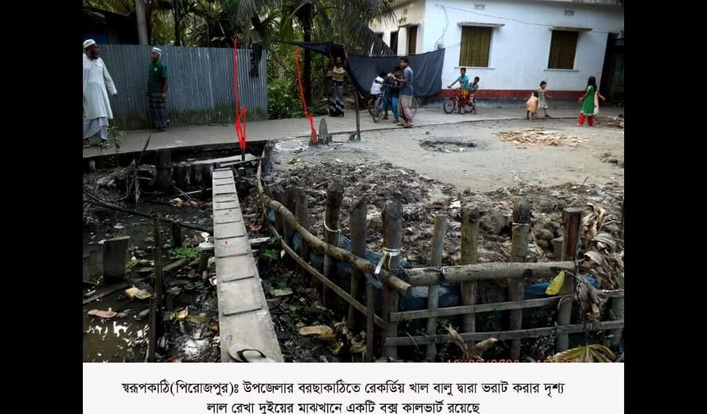 পিরোজপুরের নেছারাবাদে(স্বরূপকাঠির) বরছাকাঠি এলাকার রেকর্ডিয় খাল ভরাট করে বাড়ীঘর নির্মান করায় ব্যাপক জলাবদ্দতার সৃষ্টি হয়েছে। ফলে চরম দুরাবস্থায় পড়েছে অর্ধশতাধিক পরিবার।খালের মোহনা থেকে শুরু করে কয়েক স্থানে ভরাট করে ফেলায় খালের বাকি অংশে জমে থাকা পানি এখান ভাগাড়ে পরিনত হয়েছে। খালে জমে থাকা পানি আর বৃষ্টির পানির মধ্যে ময়লা আবর্জনা ফেলানোর কারনে পানি আবর্জনা পঁচে সৃষ্ট অসহনীয় দুর্গন্ধ মানুষকে অতীষ্ট করে তুলেছে। বেড়ে গেছে মশা-মাছির উপদ্রব।