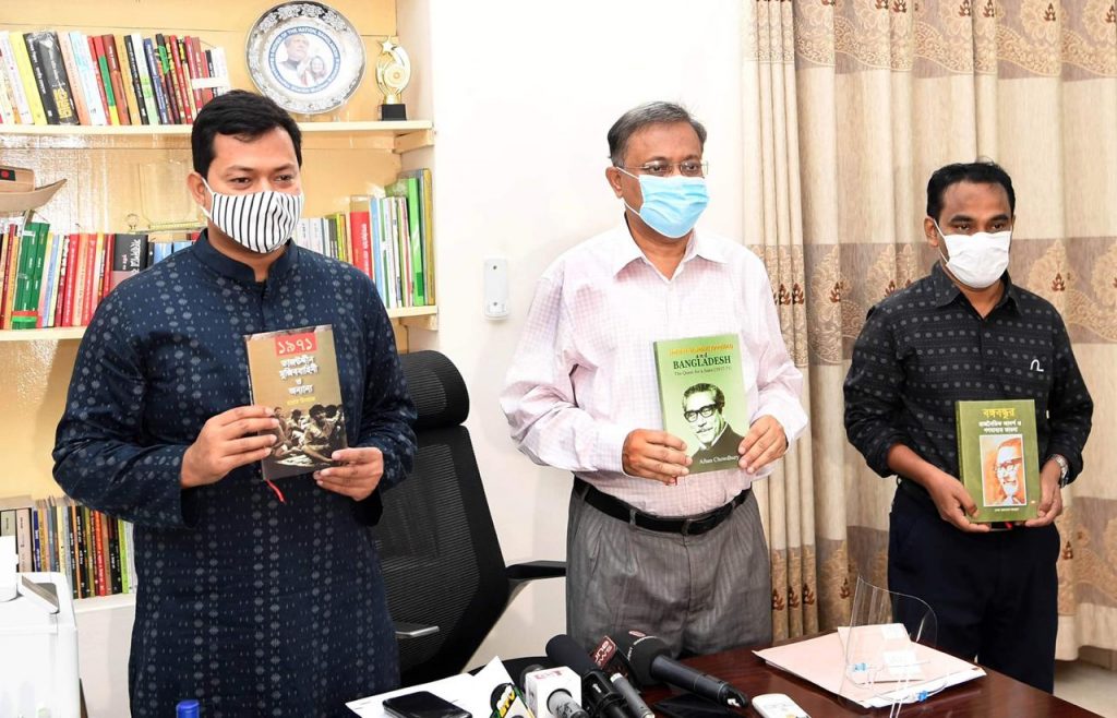 এর আগে তথ্যমন্ত্রী দিবসটি স্মরণে রাহাত মিনহাজ রচিত ১৯৭১: তাজউদ্দিন, মুজিববাহিনী ও অন্যান্য, আফসান চৌধুরী রচিত শেখ মুজিবুর রহমান এন্ড বাংলাদেশ: দ্যা কোয়েস্ট ফর এ স্টেট (১৯৩৭-১৯৭১) এবং শেখ আদনান ফাহাদ রচিত বঙ্গবন্ধুর রাজনৈতিক আদর্শ ও গণমাধ্যম ভাবনা গ্রন্থ তিনটি’র মোড়ক উন্মোচন করেন। গ্রন্থত্রয়ের প্রকাশক শ্রাবণ প্রকাশনী কর্ণধার রবীন আহসান ও লেখক রাহাত মিনহাজ মোড়ক উন্মোচনে অংশ নেন।