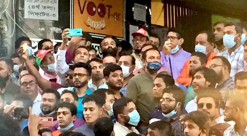 আজ ০৯ নভেম্বর ২০২০ খ্রিঃ বিকাল সাড়ে চারটায় বাংলাদেশ আওয়ামী স্বেচ্ছাসেবক লীগ কেন্দ্রীয় সভাপতি নির্মল রঞ্জন গুহ ও সাধারণ সম্পাদক আফজালুর রহমান বাবু’র নেতৃত্বে স্বেচ্ছাসেবক লীগ নেতৃবৃন্দ উত্তরা প্রীতম ভবন মার্কেট, রাজলক্ষ্মী মার্কেট, উত্তরা ফ্রেন্ডস ক্লাব মাঠ ও উত্তরা ৫ নং সেক্টরে নৌকা মার্কার সমর্থনে ব্যাপক গন সংযোগ করেন। নেতৃবৃন্দ ভোটারদের দ্ধারে দ্ধারে লিফলেট দিয়ে ভোট প্রার্থণা করেন। প্রীতম ভবনের সামনে সংক্ষিপ্ত পথসভায় সংগঠনের সভাপতি নির্মল রঞ্জন গুহ উপস্থিত সকলকে জননেত্রী শেখ হাসিনার সালাম জানান,