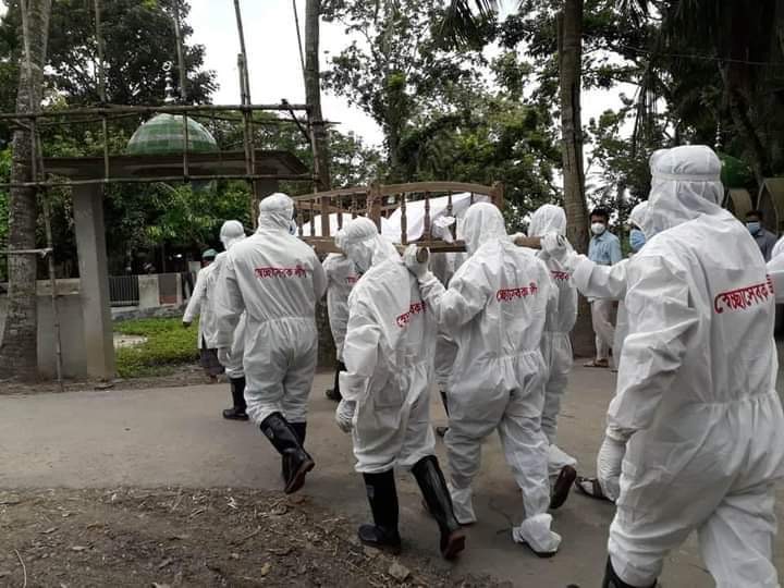 এপ্রিল,মে মাস ব্যাপী চলতে থাকে স্বেচ্ছাসেবক লীগের দেশব্যাপি হ্যান্ড স্যানিটাইজার বিতরন,মাস্ক,খাদ্য সহায়তা,টেলি হেলথ সার্ভিস,কল সেন্টার ০৯৬১১৯৯৯৭৭৭ এর মাধ্যমে ঘরবন্ধী অসুস্থ মানুষদেরকে বিশেষজ্ঞ ডাক্তারের সাহায্যে সার্বক্ষনিক বিনামূল্যে পরামর্শ প্রদান করে থাকে।বিভিন্ন জেলায় টিম গঠন করে অসহায় করোনা রোগীর লাশ গোসল,জানাজা,দাফন,সৎকার করে।করোনা রুগী ও অসহায় জটিল রুগী বহনের জন্য সার্বোক্ষনিক একটা লাশের গাড়িসহ ১০ টা এ্যাম্বুলেন্স সার্ভিস চালু রাখা হয় বিনামূল্য এবং উপরোক্ত সকল কার্যক্রম এখনো চলমান রয়েছে।