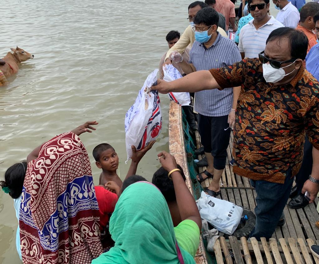 এরপর ঢাকা জেলার নবাবগঞ্জের কুন্ডা,ক্ষতিয়া,পাতিলঝাপ,শল্যা ইউনিয়নে কালিগঙ্গা নদীর ভাঙনে ক্ষতিগ্রস্ত মানুষদের মাঝে কেন্দ্রীয় নেতারা খাদ্যসামগ্রী বিতরন করে।