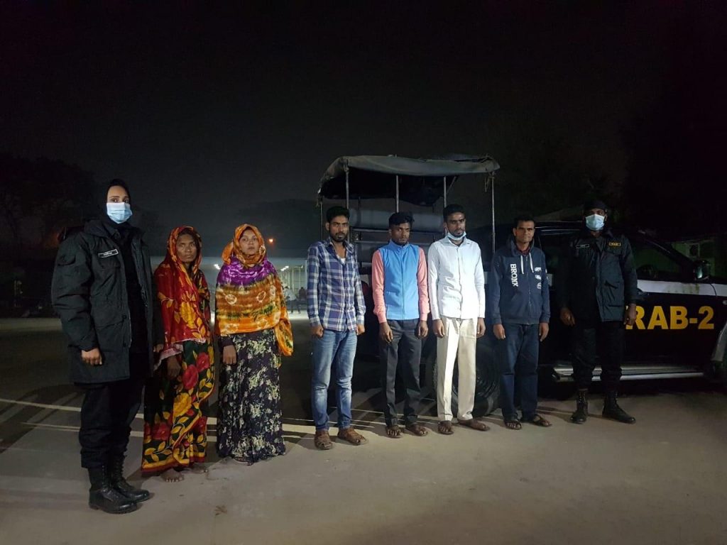 গ্রেফতারকৃতরা হলেন, মো. মাসুদ রানা (২৪), মো. ছফির উদ্দিন শানু (৫০), মো. তমজিদুল ইসলাম (মনির) (৩৪), মো. আলমগীর হোসেন (২৬), ফিরোজা বেগম (৫৭), ও আসমা বেগম (৪২)।