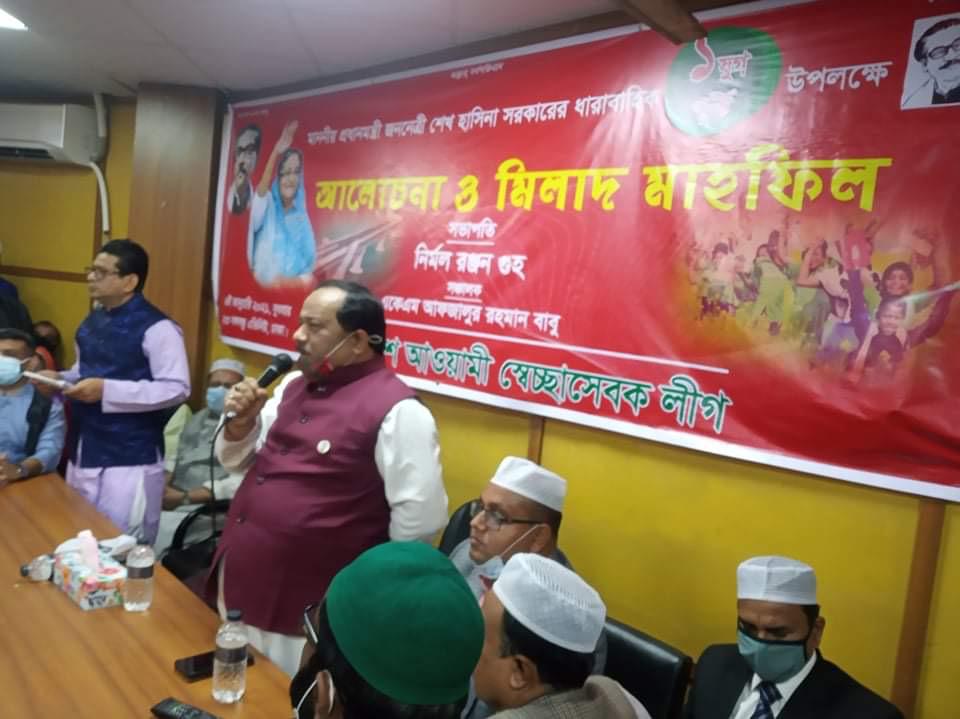 সংগঠনের সাধারণ সম্পাদক আফজালুর রহমান বাবু উন্নয়ন অগ্রগতির সংক্ষিপ্ত বর্ণনায় বলেন, পদ্মা সেতু নির্মাণ, সমুদ্র সীমানা বিজয়, দৃষ্টি নন্দন ফ্লাইওভার, মেট্রোরেল নির্মাণ, বঙ্গবন্ধুর খুনি ও রাজাকার, যুদ্ধাপরাধীদের বিচার, বয়স্ক ভাতা, বিধবা ভাতা, প্রতিবন্ধী ভাতা, মুক্তিযোদ্ধাদের সম্মানী ভাতা, মাতৃত্বকালীন ভাতাসহ আরও অন্যান্য ভাতা প্রদান, শিক্ষার্থীর হাতে বিনামূল্যে বই বিতরণ, গরীব শিক্ষার্থীদের উপবৃত্তি প্রদান, কমিউনিটি ক্লিনিক স্থাপন, রপ্তানী আয় বৃদ্ধি, জিডিপি প্রবৃদ্ধি অর্জন, ইউনিয়নে ডিজিটাল তথ্য সেবা কেন্দ্র স্থাপন, শিল্পপার্ক স্থাপন, ইকোনমিক জোন নির্মাণ, কর্মসংস্থান সৃষ্টি, কৃষিতে সফলতা, জঙ্গী ও সন্ত্রাস দমন, রামপাল কয়লা বিদ্যুৎ কেন্দ্র স্থাপন, বিদ্যুৎ উন্নয়ন, পায়রা সমুদ্র বন্দর নির্মাণ, নারীর ক্ষমতায়ণ, ছিটমহল সমস্যার সমাধান, অনলাইন সেবা প্রদান সহ উন্নয়ন অগ্রগতিতে বাংলাদেশ আজ বিশ্বের রোল মডেল। আলোচনা শেষে জননেত্রী শেখ হাসিনার সু স্বাস্থ্য ও দীর্ঘায়ু কামনায় দোয়া ও মোনাজাত করা হয়।