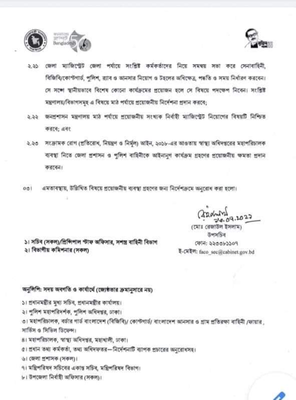 ১৯. স্বাস্থ্যবিধি অনুসরণ করে মসজিদে নামাজের বিষয়ে ধর্ম বিষয়ক মন্ত্রণালয় নির্দেশনা দেবে।