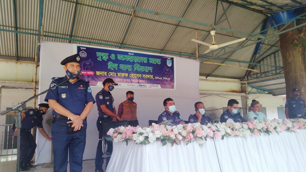 ঈদ সামগ্রী বিতরণ কালে ঢাকা জেলা পুলিশ সুপার মারুফ হোসেন সরদার বলেন, ঢাকা জেলা পুলিশের পক্ষ থেকে আমরা প্রতি বছর দুস্থ ও অসহায়দের মাঝে ঈদ সামগ্রী বিতরণ করে থাকি । এবারও ঈদের আনন্দ ভাগাভাগি করতে অসহায় ও দুস্থদের মাঝে ঈদ উপহার হিসেবে খাদ্য সামগ্রী বিতরণ করা হয়েছে। একটি পরিবার যাতে ভালোভাবে ঈদ উদযাপন করতে পারে সে উদ্দেশ্যেই আমাদের এই সল্প প্রয়াস।