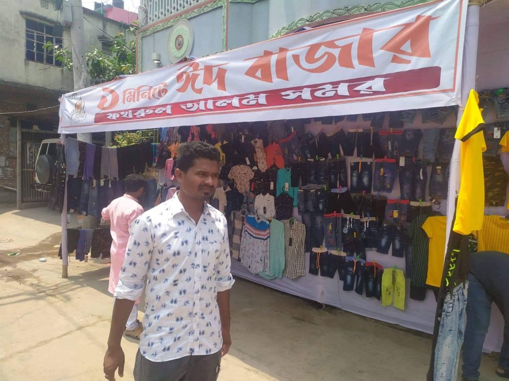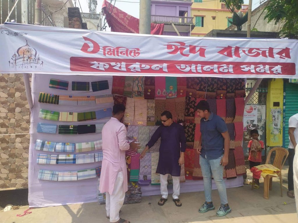 আসন্ন ঈদুল ফিতরকে সামনে রেখে ব্যতিক্রমী এই আয়োজন সাজানো হয়েছে সাভার উপজেলার তেঁতুলঝোড়া ইউনিয়নের হেমায়েতপুর এলাকায়। ‘উৎসব হোক সবার জন্য’ স্লোগানকে সামনে রেখে তেঁতুলঝোড়া ইউনিয়নের চেয়ারম্যান ফখরুল আলম সমর ও ওয়াসিল উদ্দিন ফাউন্ডেশনের যৌথ উদ্যোগে ১ মিনিটে ঈদ বাজার নামে এই ঈদ কেনাকাটার আয়োজন করা হয়েছে। সেখানে মাত্র ১ মিনিটেই এলাকার অসহায় দরিদ্র পরিবারের সদস্যরা মনের খুশিতে ঈদের বাজার করছে।