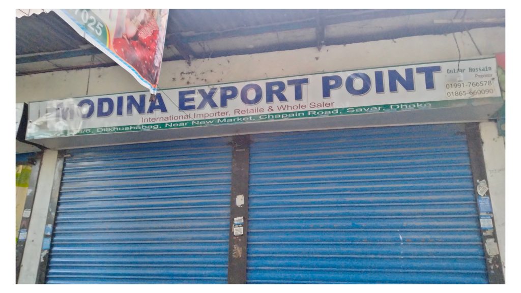 নিউমার্কেট সংলগ্ন চাঁপাইন রোডে অবস্থিত ‘মদিনা এক্সপোর্ট পয়েন্ট’ এর স্বত্বাধিকারী গুলজার হোসাইন জানান, ওবায়দুর রহমান ও মাজদার রহমান নামে কারো সাথে তার পরিচয় নেই।