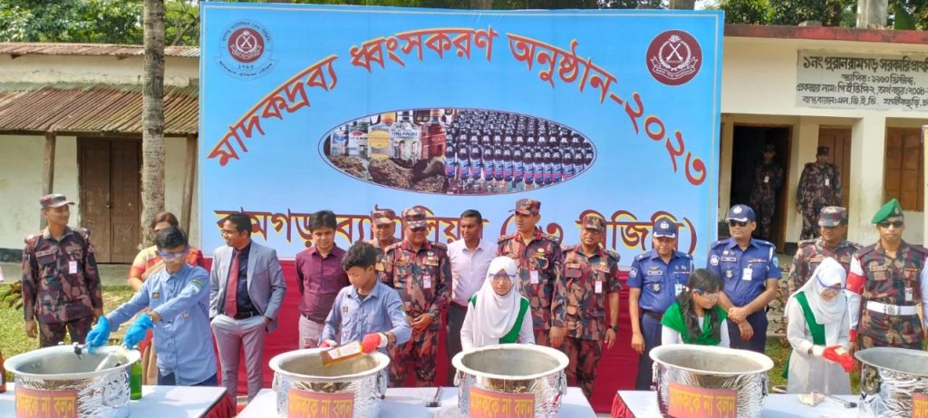 এসময় রামগড় ব্যাটালিয়নের দায়িত্বপূর্ণ সীমান্ত এলাকায় পরিচালিত বিভিন্ন সময়ের অভিযানে আটককৃত মালিকবিহীন বিভিন্ন প্রকার ৭২৫১ বোতল ভারতীয় মদ, ২৬৯ ক্যান বিয়ার, ১৯২৭ বোতল ফেন্সিডিল, ৯৮৭৮ পিস ভারতীয় ইয়াবা ট্যাবলেট, ৪০৯.৩৬ কেজি গাঁজা, ২০৮.২৫ লিটার চোলাই মদ, ৪০ পিস টার্গেট ট্যাবলেট, ৪০ পিস সেনেগ্রা ট্যাবলেট এবং ৫০০ পিস নিমসোলাইড ট্যাবলেট ধ্বংস করা হয়।