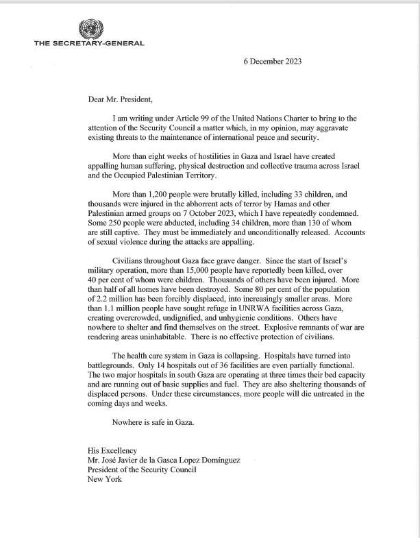 মহাসচিব অ্যান্তোনিও গুতেরেস জাতিসংঘের ধারা- ৯৯ এর ক্ষমতাবলে ওই প্রস্তাব উত্থাপন ও এ নিয়ে আলোচনা করতে নিরাপত্তা পরিষদকে বাধ্য করেন। এছাড়া মধ্যপ্রাচ্যের দেশ সংযুক্ত আরব আমিরাতও যুদ্ধবিরতির প্রস্তাব উত্থাপন করে।