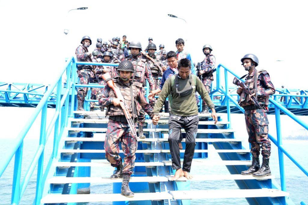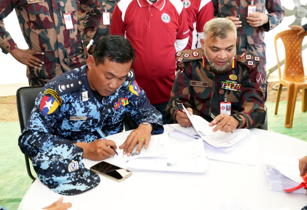 এরই ধারাবাহিকতায় আজ সকালে বাংলাদেশ কোস্ট গার্ডের জাহাজে করে মায়ানমার সীমান্তরক্ষী বাহিনীর পুলিশ কর্নেল Myo Thura Naung এর নেতৃত্বে ০৫ সদস্য বিশিষ্ট বিজিপি প্রতিনিধিদল কক্সবাজারের ইনানীর নৌবাহিনীর জেটিঘাটে আসে এবং বিজিবি’র নিকট থেকে বাংলাদেশে আশ্রয় গ্রহণকারী ৩৩০ জন মায়ানমার নাগরিককে গহণ করে মায়ানমারে নিয়ে যায়।