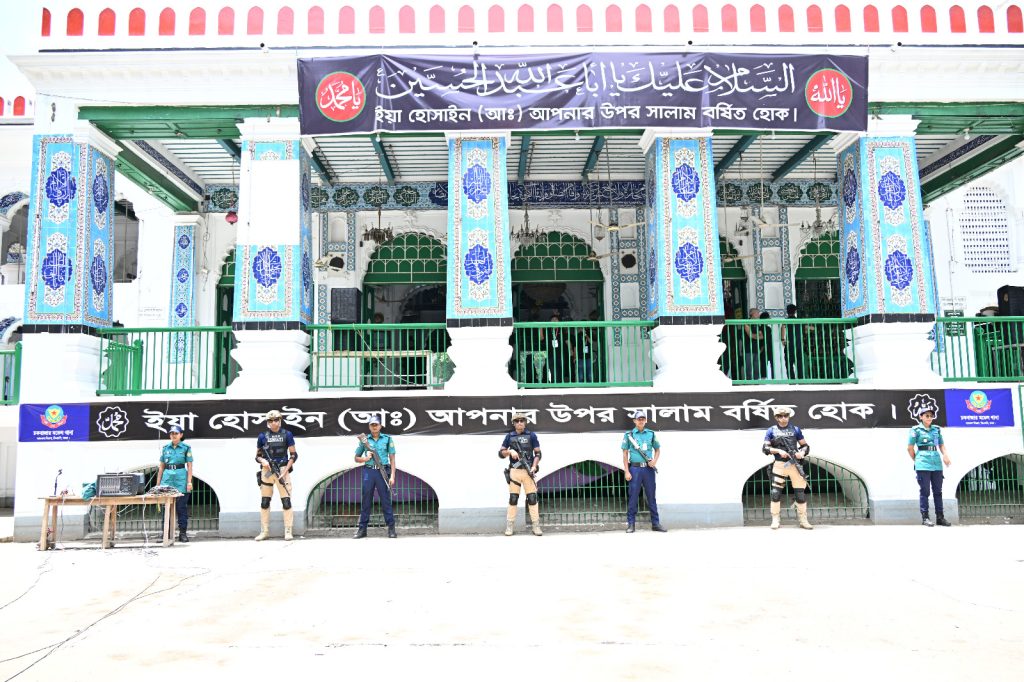 তিনি আরও বলেন, হোসেনি দালানের আশপাশের উঁচু ভবনের ছাদে সাদা পোশাকে ও ইউনিফর্মধারী পুলিশ থেকে অনুষ্ঠানের নিরাপত্তা নিশ্চিত করা হবে। তাজিয়া মিছিলের সামনে, পিছনে পুলিশি নিরাপত্তা থাকবে। সমগ্র অনুষ্ঠানস্থল সিসিটিভি ক্যামেরার আওতায় রাখার পাশাপাশি সাইবার পেট্রোলিংয়ের মাধ্যমে নিরাপত্তা নিশ্চিত করা হবে।
